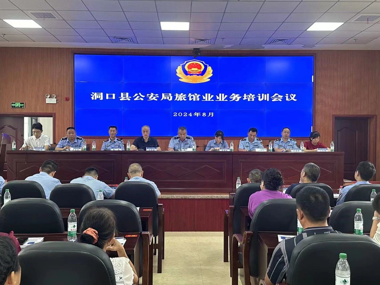 近日,洞口县公安局组织召开全县旅馆业业务培训会。辖区旅馆业业主、各派出所、县检察院、县文旅局、县市监局、县人社局、中国电信洞口分公司相关负责人以及县公安局治安大队全体工作人员共160余人参加会议。县政法委副书记肖颂国,县公安局党委委员、副局长尹标出席会议并讲话,会议由县公安局治安大队大队长肖礼主持。