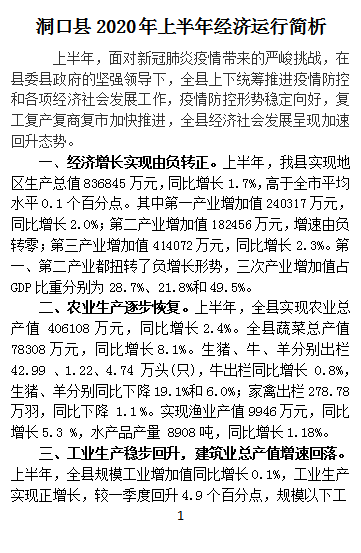 洞口县2020年二季度经济运行简析