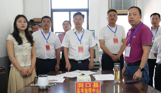 吴韬、许治国一行先后来到洞口县教育局高考指挥中心,洞口一中南校区、洞口一中北校区、洞口思源实验学校、城关中学、洞口九中等考点,听取了考务工作情况汇报,详细了解考务组织实施、考卷安全管理、应急服务保障等工作开展情况。